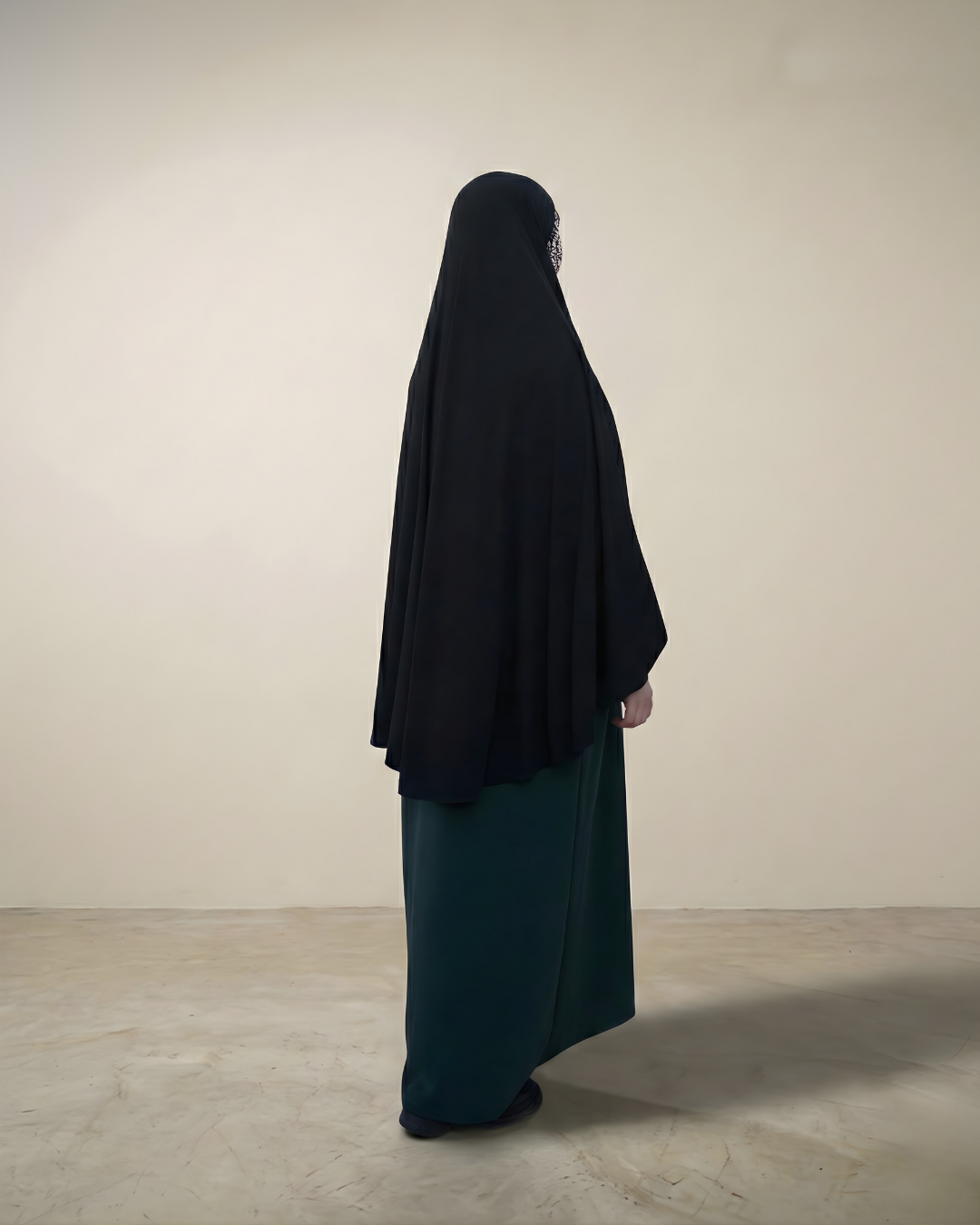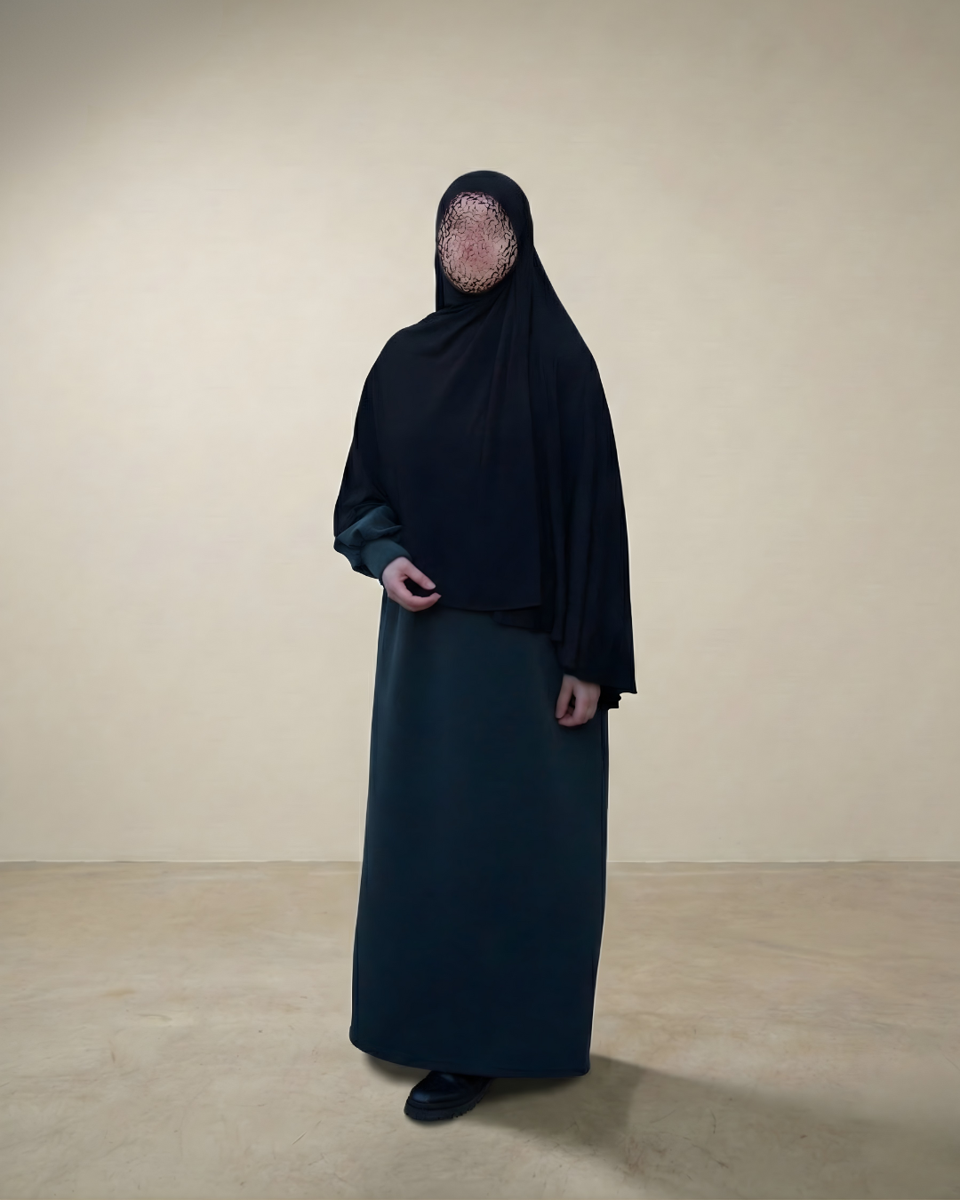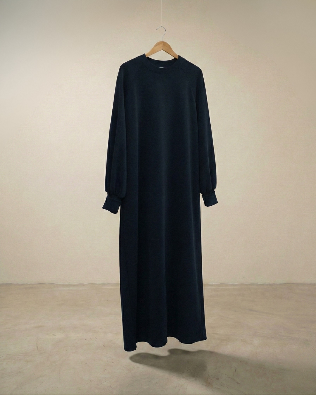 De modal sweaterjurk is een lange A-lijn jurk gemaakt van modalstof met een zachte textuur en een soepele, vloeiende valling. De jurk heeft een ronde halslijn, subtiele pofmouwen en een enkellange snit met een lengte van ongeveer 140 cm.